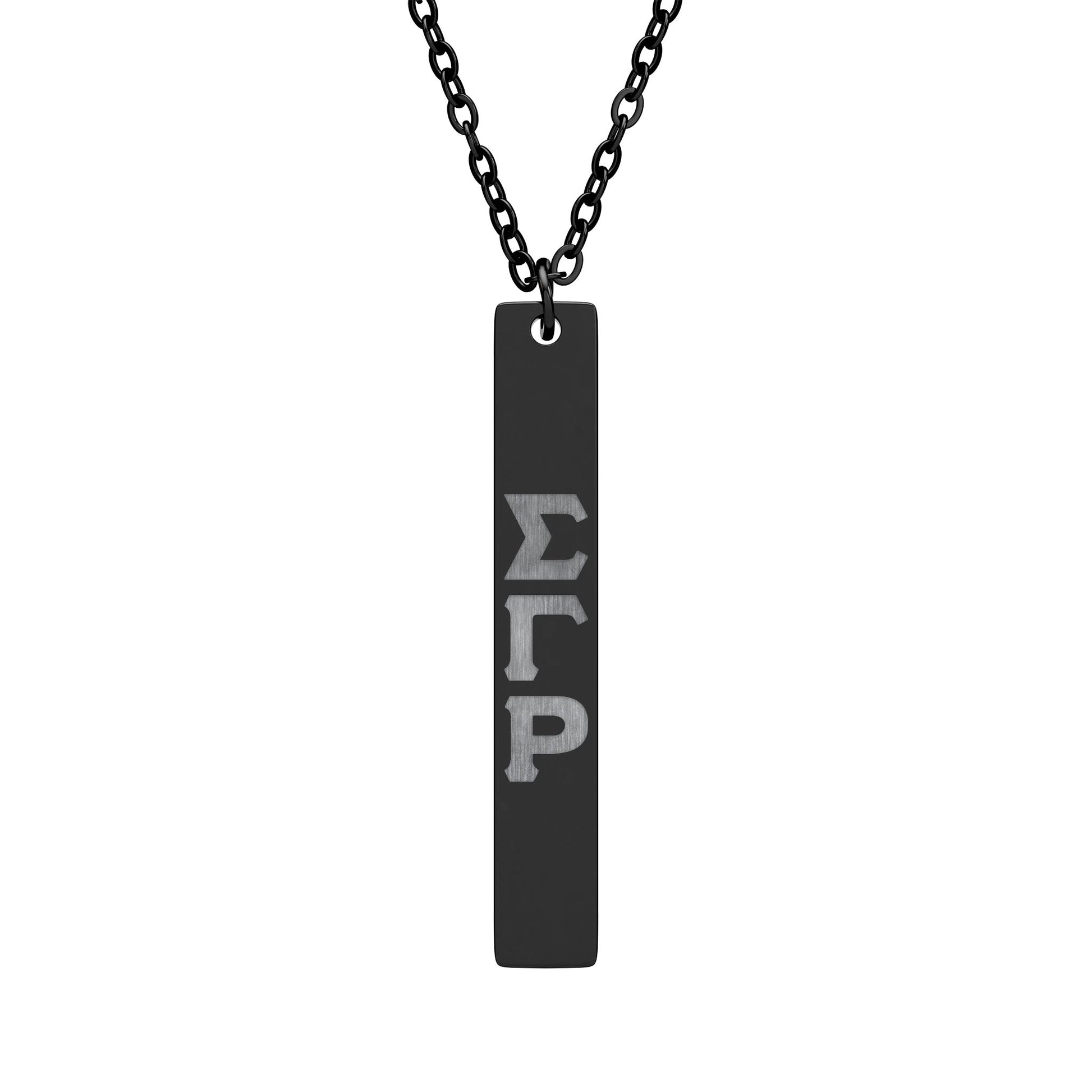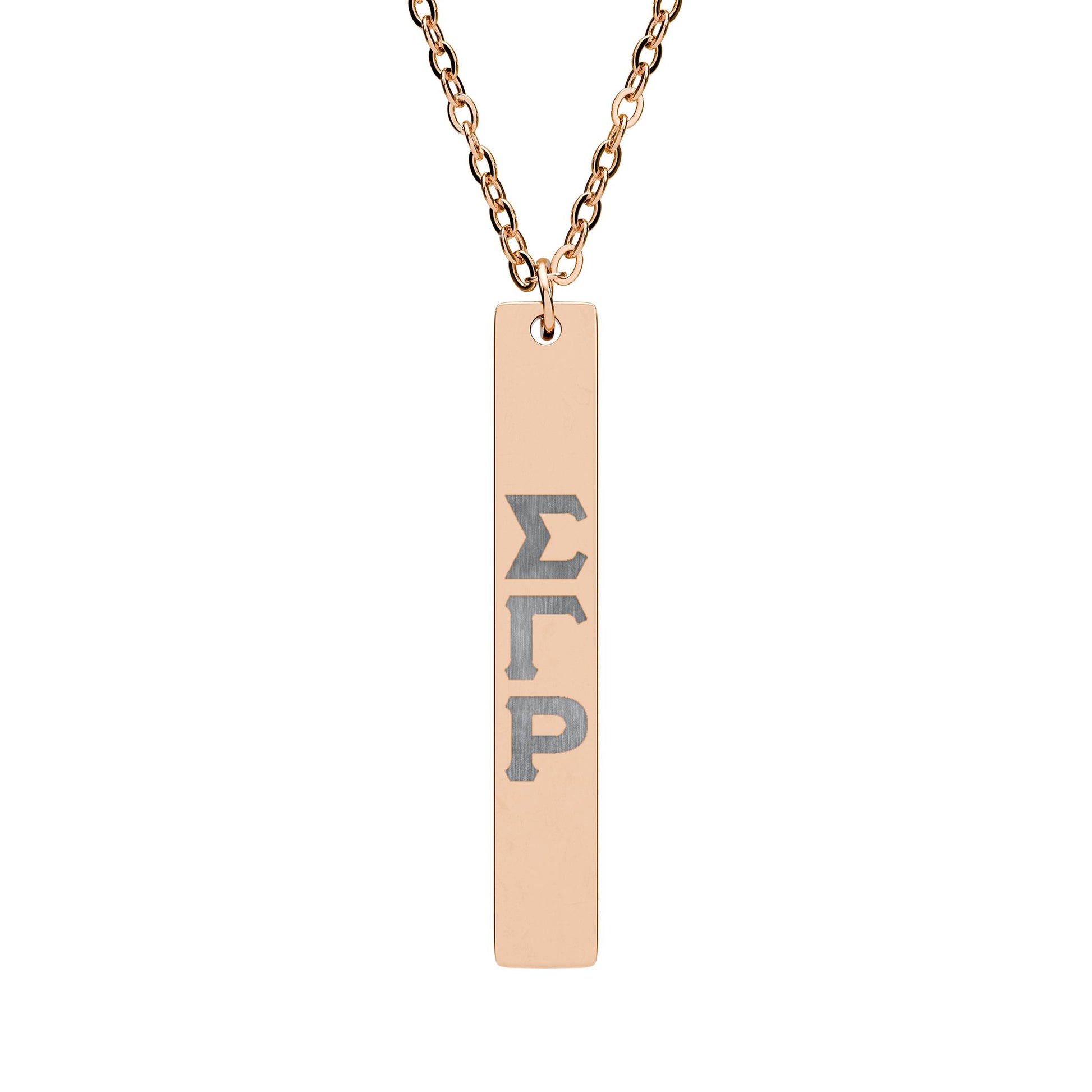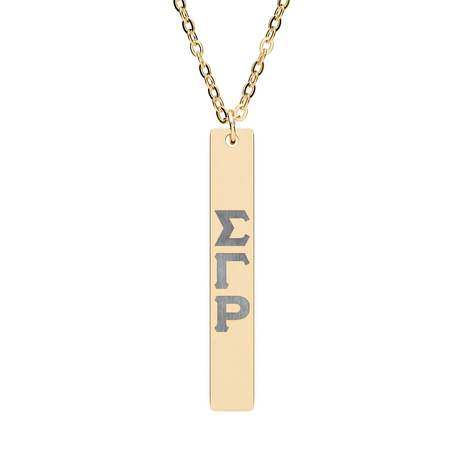 Vertical Bar Necklace — Engraved Greek Letter Pendant (Sigma Gamma Rho Style)